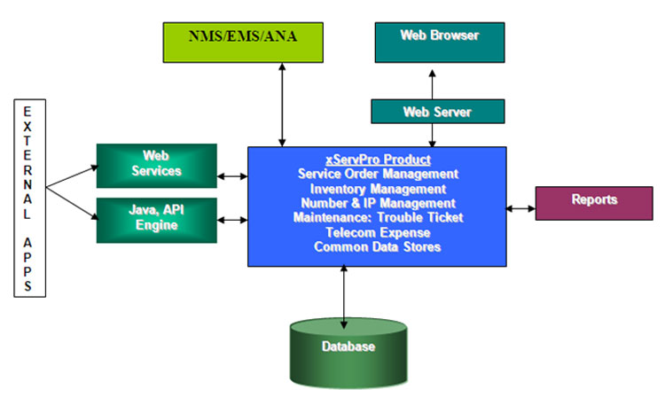 Xalted’s Service provisioning and Service fulfillment solution, xServPro is a fully integrated OSS suite of comprehensive Order Management, Circuit and Asset Inventory Management, Number Management, and Trouble Management functionality. It enables service providers to master their mission-critical business and operations processes with four fully integrated key products. xServPro also includes a Common Data Store, which is a centralized database, which contains all elements of common data. All data is accessible to all processes and authorized users, thus providing single source data, data integrity, and consolidated reporting. xServPro also supports integration to external applications through an extensive suite of application program interfaces (API’s) supporting a variety of data transfer protocols and mechanisms.